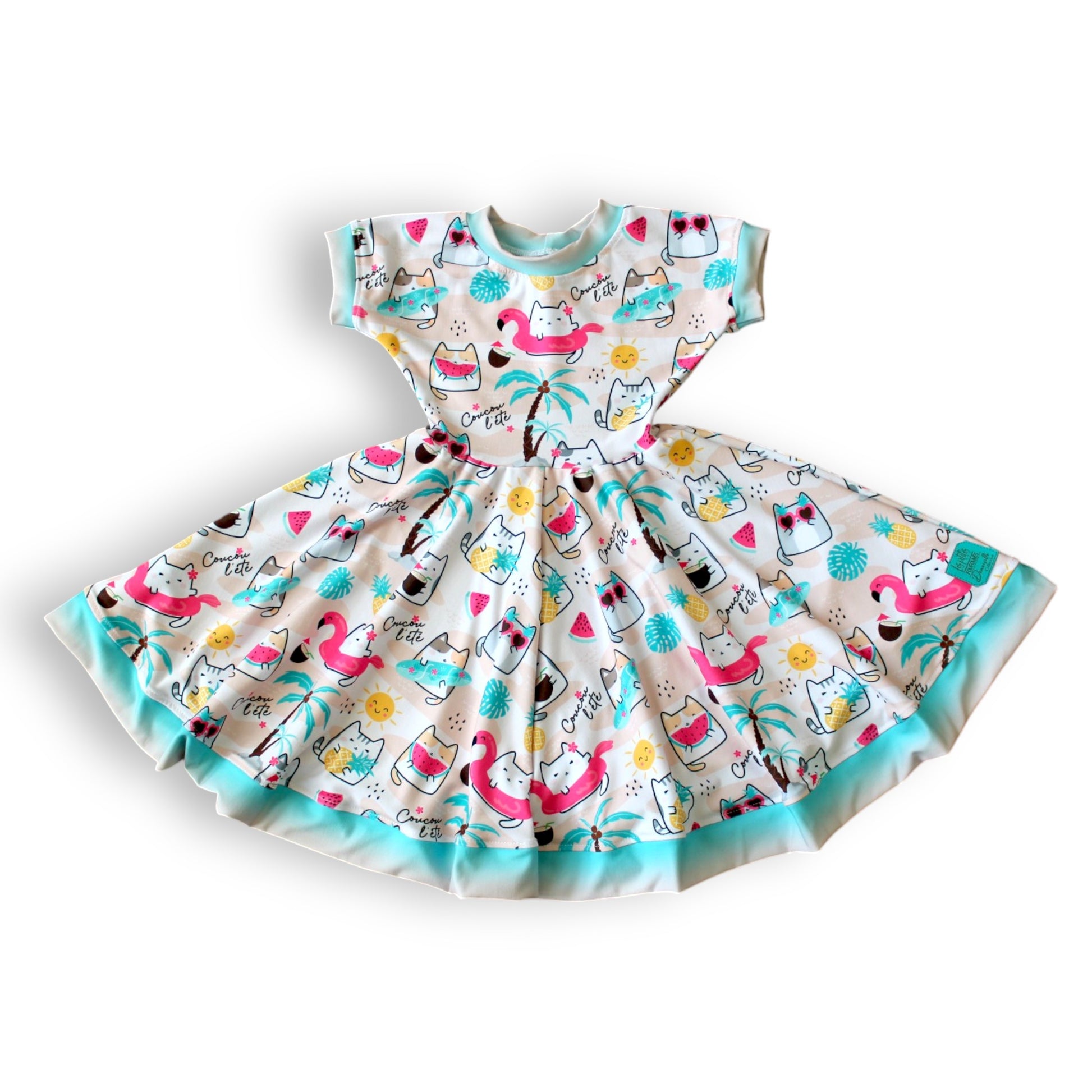 100% polyester dress with choice of pattern and matching color label.