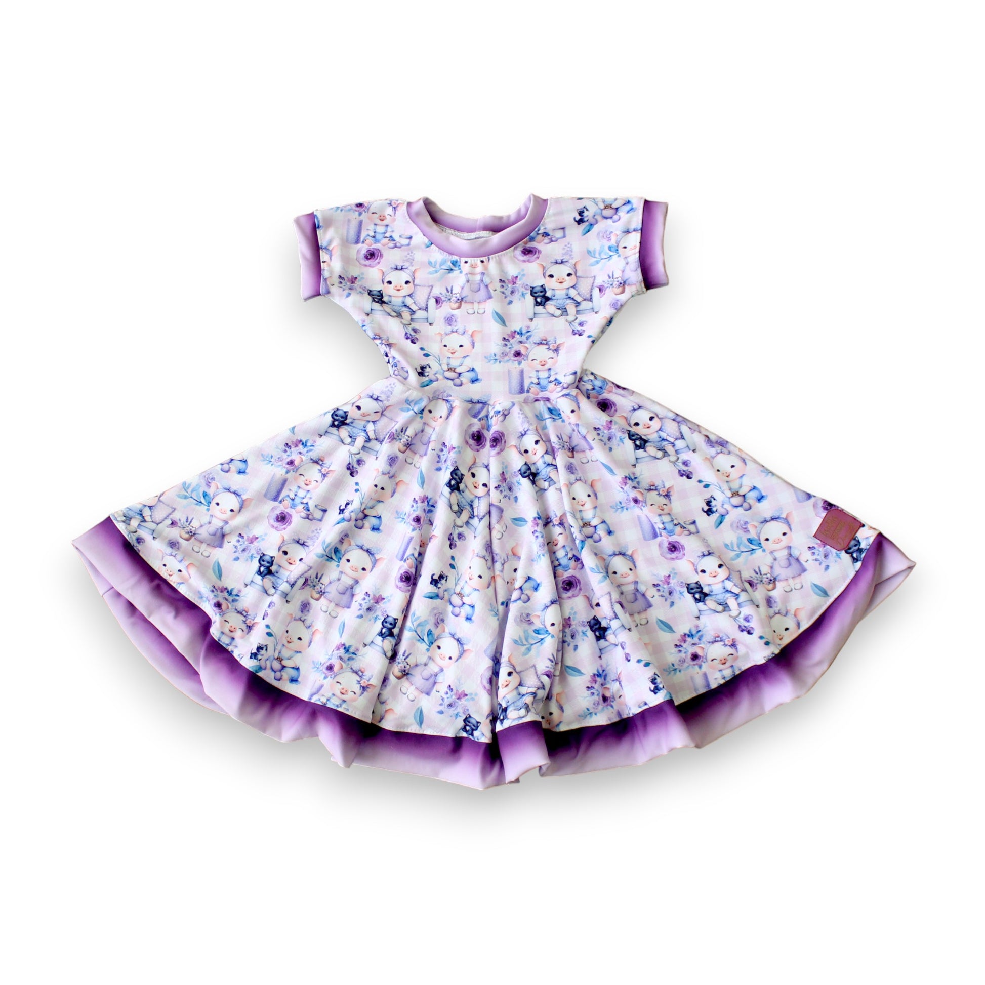Robe 100% polyester avec motif au choix, et étiquette de couleur assortie.