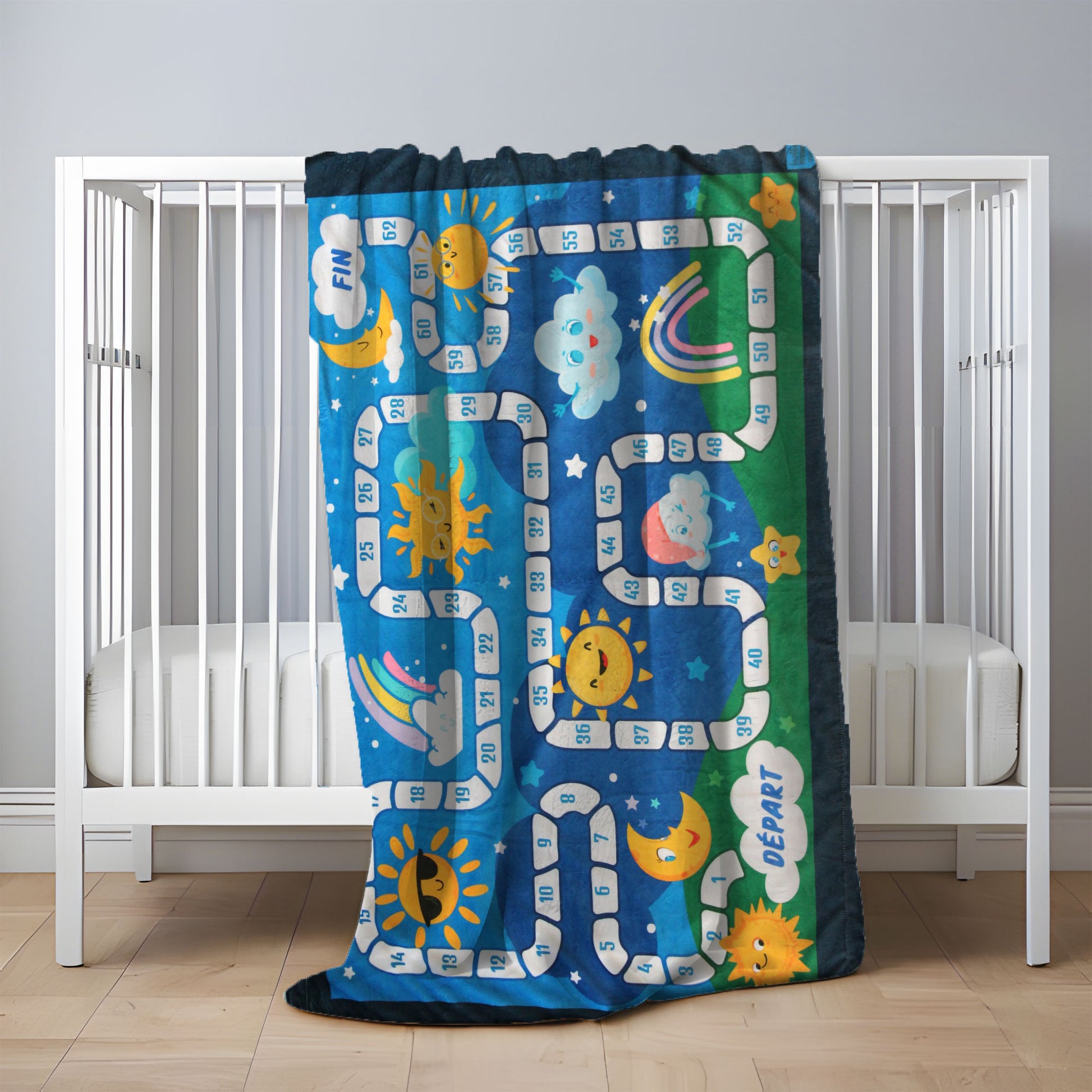 Doudou double 100% polyester avec motif jeux de table. Inclus 4 pions de jeux assortir et un dé fabriqué en 3D avec plastique recyclé.
