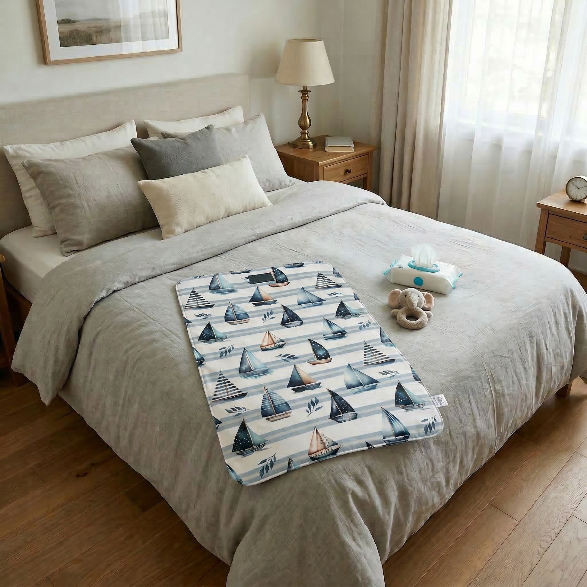 Tapis de change 100% polyester, pull et membrane plastifiée